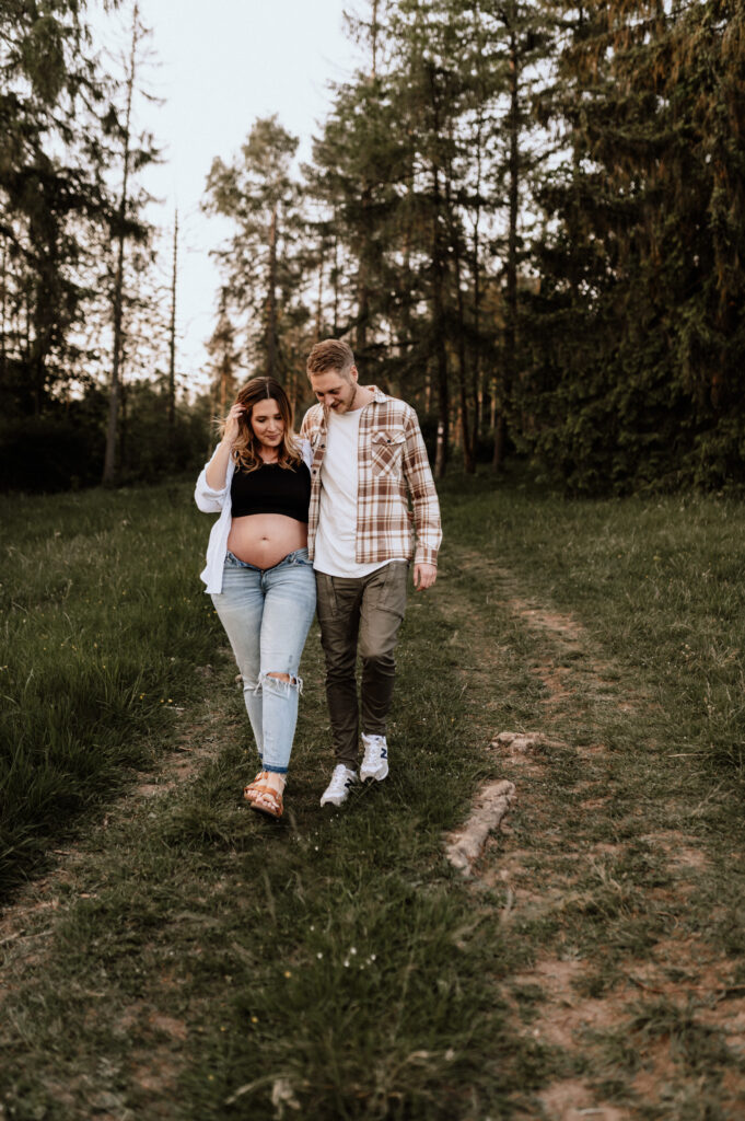 Jenny, Johannes und ich haben uns auf einer Hochzeit kennengelernt, die ich fotografierte. Diese zufällige Begegnung führte zu einer wunderbaren Zusammenarbeit. Die beiden entschieden sich, für ihr Babybauchshooting über 200 Kilometer zu fahren – eine Entscheidung, die mich wirklich ehrt.Das Shooting fand an einem warmen Sommertag statt, die Abendsonne tauchte alles in ein magisches Licht. Die beiden strahlten vor Vorfreude und Liebe, und es war mir eine Freude, diese besonderen Momente für sie festzuhalten.